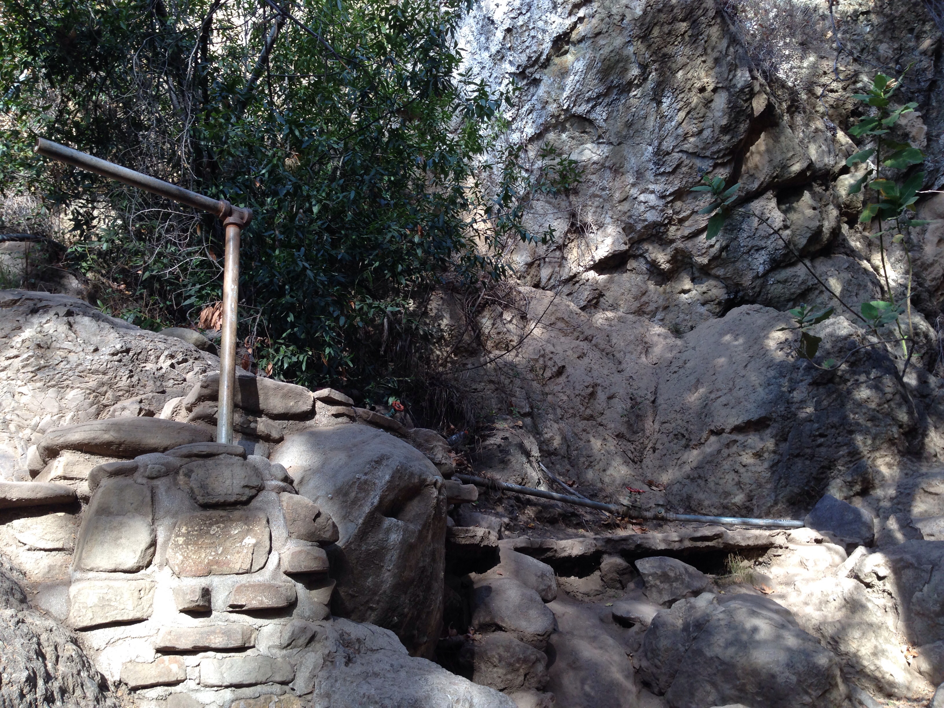I hiked the Solstice Canyon Trail then made a loop of it by returning via the Rising Sun Trail. First, it must be said that this hike is simply one of the most beautiful, diverse, interesting, and enjoyable hikes in the area. Also, it is packed with gorgeous ruins of historic homes that have been preserved by the parklands for all to enjoy. There is a stream that incredibly is still running now, at the end of the dry season, and several waterfalls. There are views of the ocean. Lots of lush greenery shades the trail. And wildlife, mostly in the form of birds of every description, is everywhere. I saw a tiny bunny hop across the trail. He stopped and stared at me for a while. I tried to slowly reach for my camera, but that movement scared him off. He probably thinks that a photograph would steal his soul.