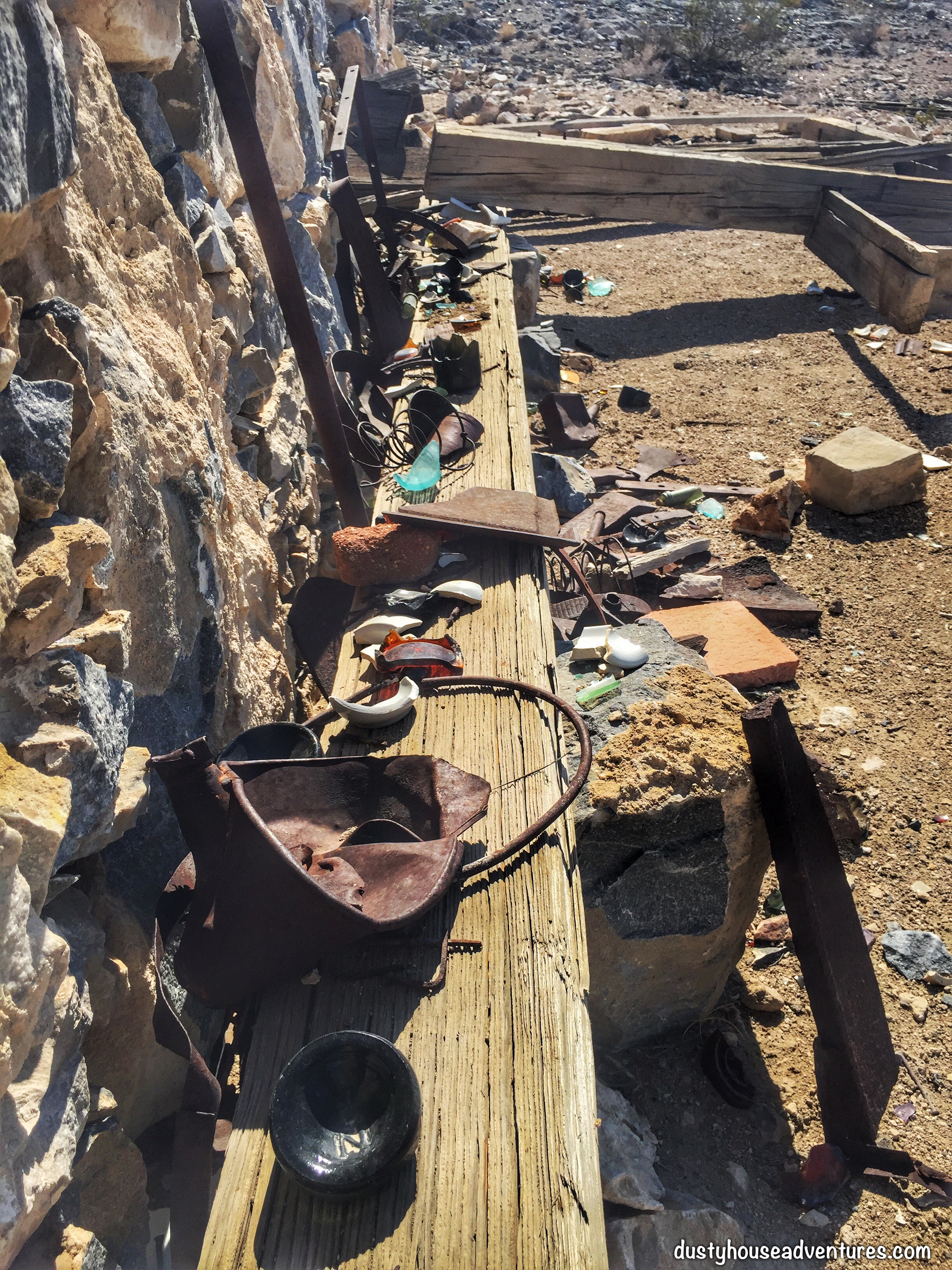 Artifacts assembled outside the general store. Lots of old bottles.